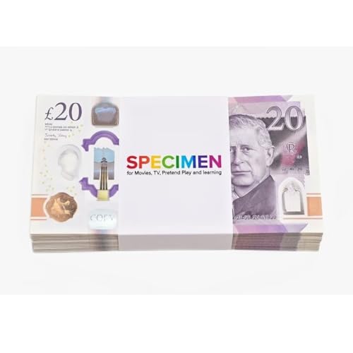 YIQILAFADA 100 x UK-Style Prop Money Notes – 20 Specimen Movie Money for Films, TV & Education