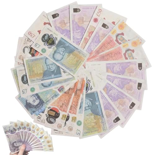 100 Pcs Prop Money UK, Fake Money Notes, Play Money for Kids, Educational Toys for 3+ Year Olds, Fake Notes for Pranks and Games,Four Denominations (5 10 20 50)