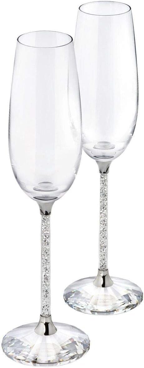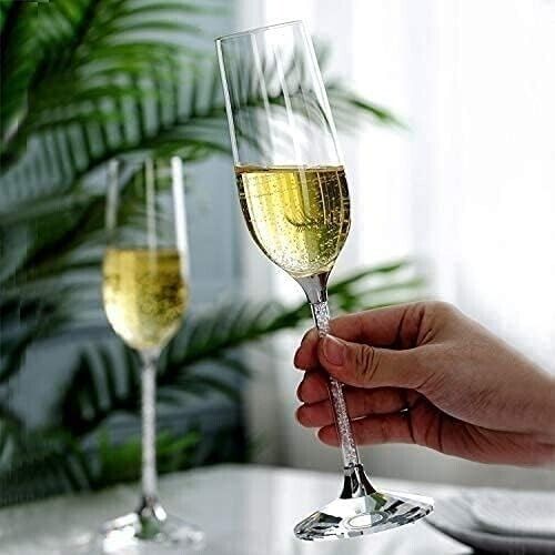 Set of 2 Crystallized Champagne Flute Glasses - Elegant Prosecco Glasses, 22cm