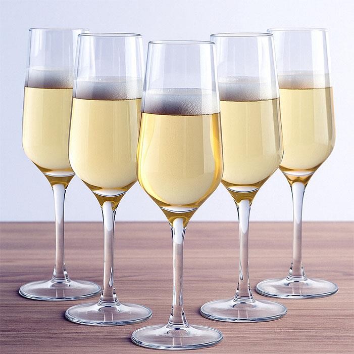 Set of 6 Champagne Glasses 220ml Flute Glasses Prosecco, Cava & Sparkling Wine