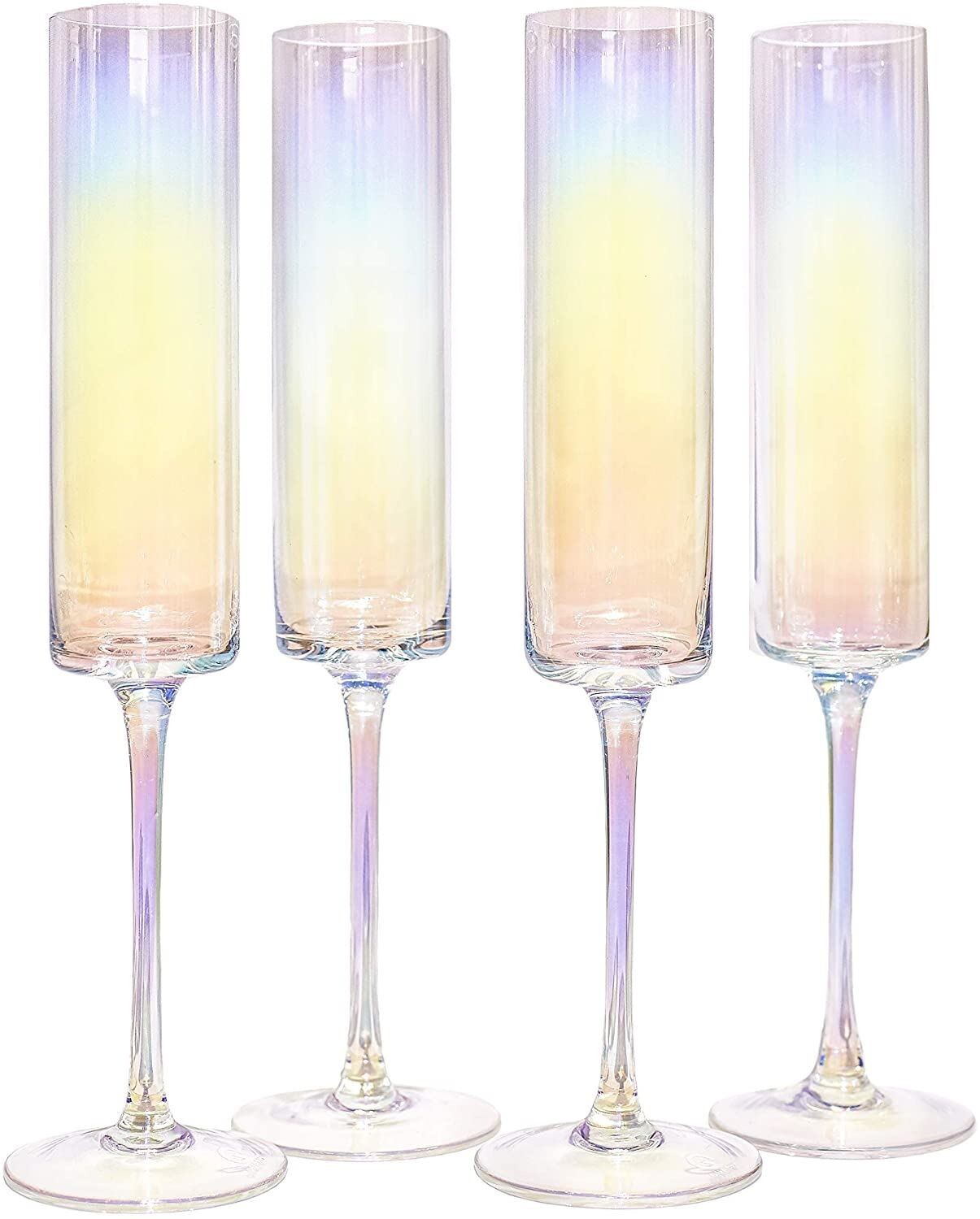 Edge Champagne Flutes Iridescent Prosecco Drinking Glass Glasses Set of 4 | M&W