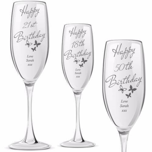 Landmark Birthday Personalised Butterfly Champagne Prosecco Glasses BUTEN-CH
