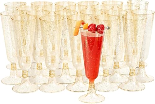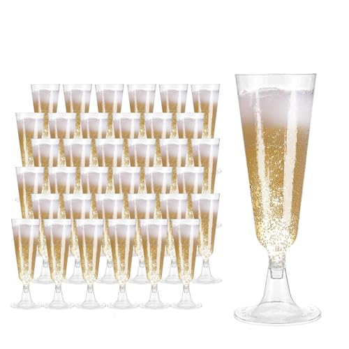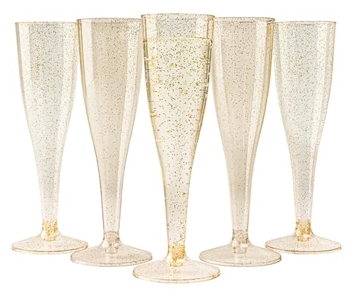 KOOSREEL Plastic Champagne Flutes, 50 Pack 5Oz/150ml Gold Glitter Plastic Champagne Glasses Cocktail Glasses Prosecco Glasses for Party,Birthday,Wedding,Chrismas,Thanksgiving