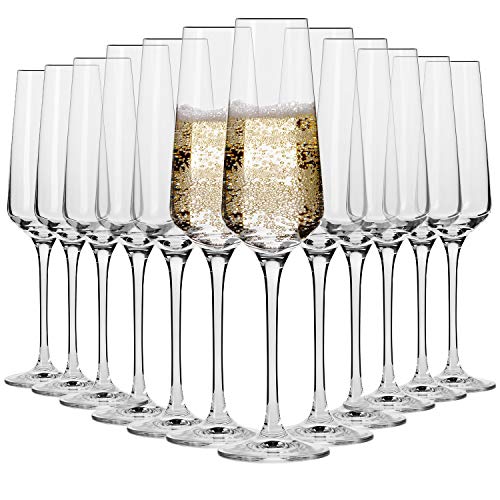 Krosno Champagne Flutes | Set of 12 | 180 ML | Avant-Garde Collection | Lead-Free Crystal Glass | Prosecco Glasses | for Home, Restaurants & Parties | Dishwasher Safe