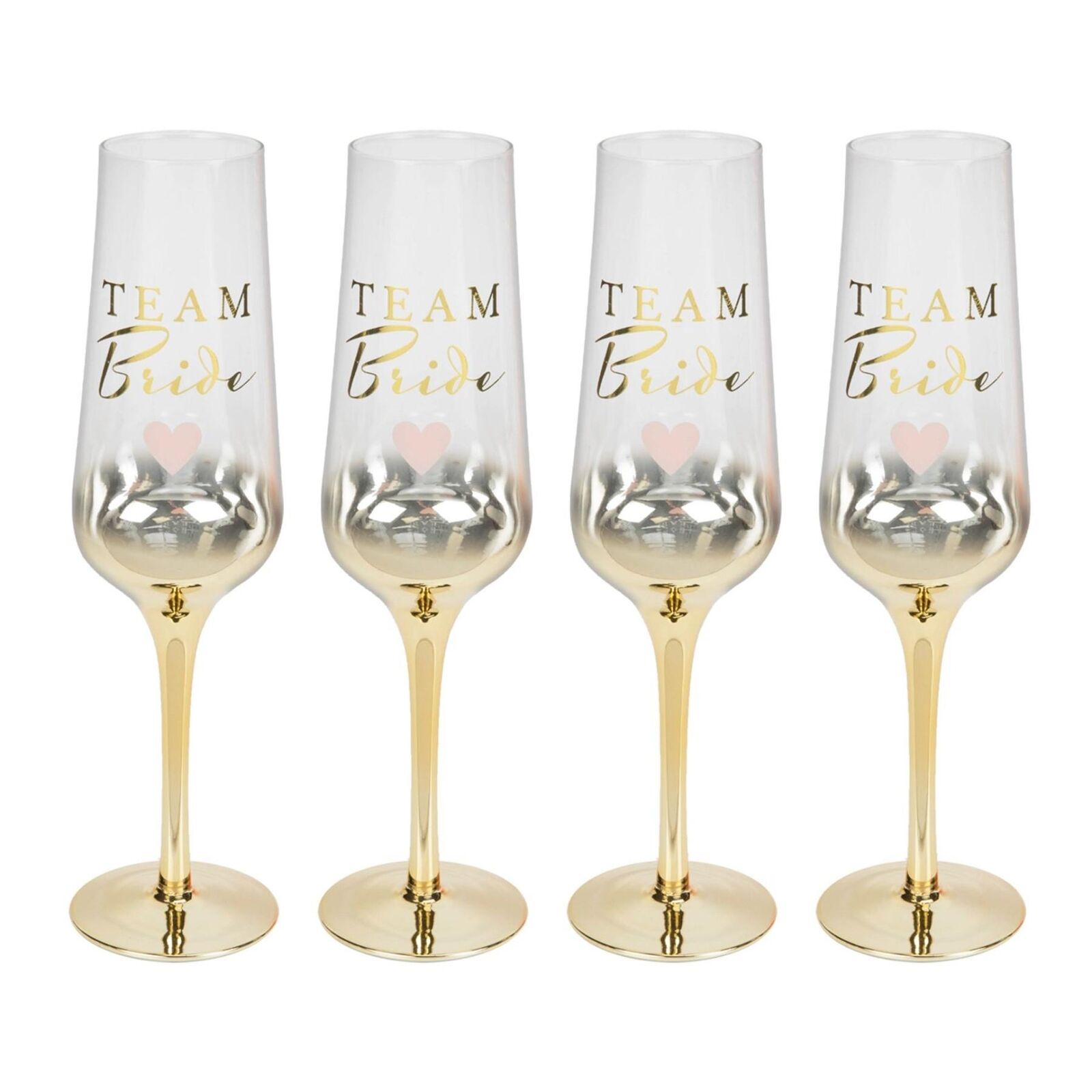 Team Bride Prosecco Glasses Hen Party Bridal Shower Champagne Flutes Set of 4
