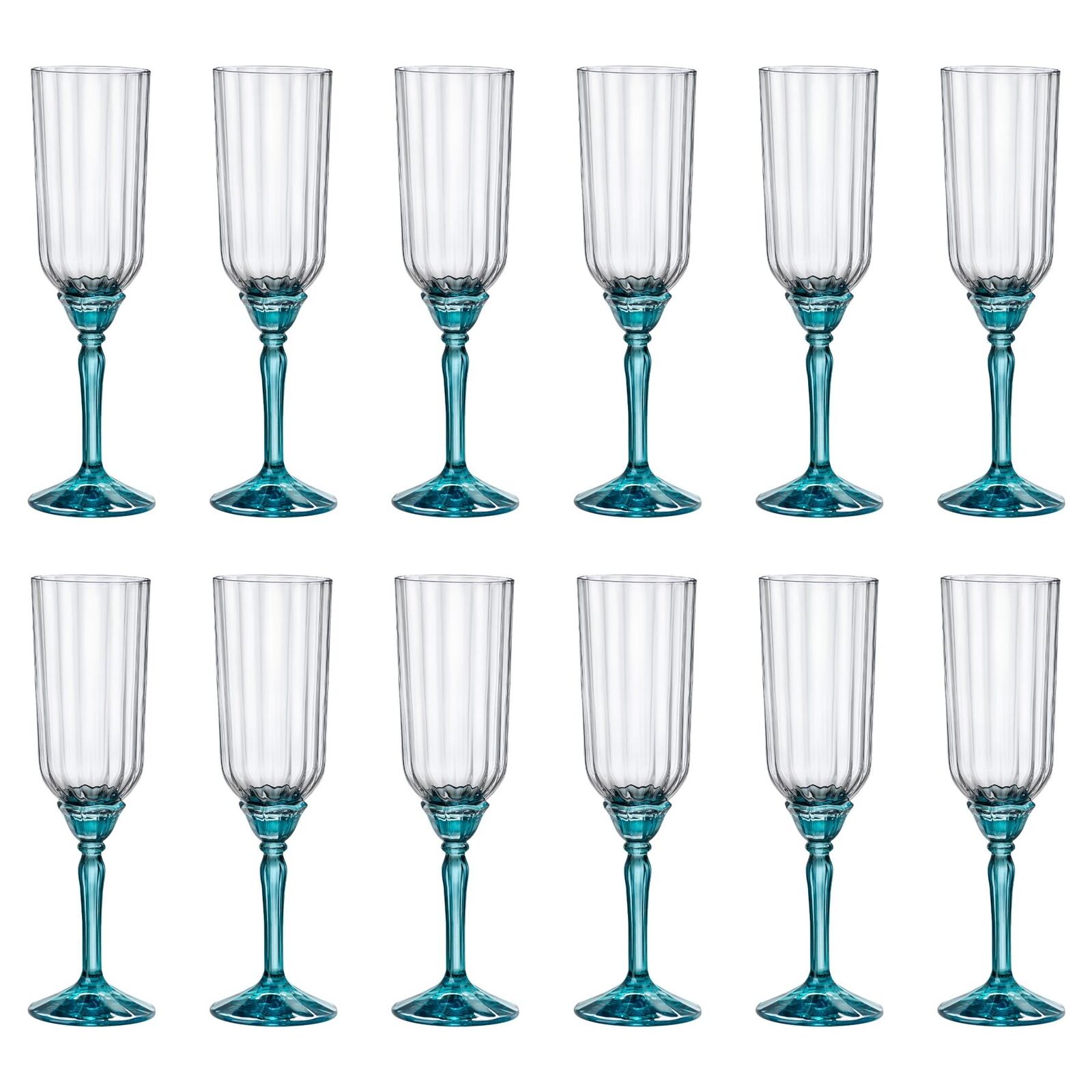 12x Bormioli Rocco Florian Champagne Flutes Prosecco Wine Glasses 210ml Blue