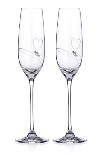 DIAMANTE Champagne Flutes Prosecco Glasses Pair with ‘Romance ’ Hand Cut Design Embellished with Crystals Set ot Two Glasses with Gift Box