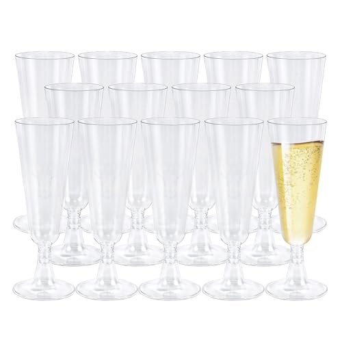 Woobroo Plastic Champagne Flutes, 50 Pack 5Oz/150ml Plastic Champagne Glasses Cocktail Glasses Prosecco Glasses for Party,Birthday,Wedding,Chrismas,Thanksgiving