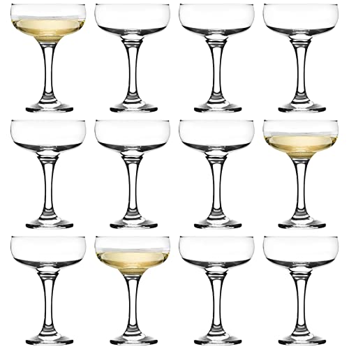 LAV 12x Clear 235ml Misket Glass Champagne Saucers - Vintage Glass Espresso Martini Prosecco Wine Gin Coupe Glasses Gift Set