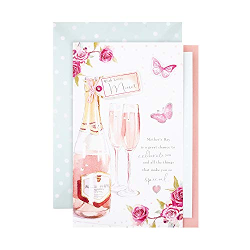 Hallmark Large Mothers Day Card for Mum, Mum Mothers Day Card, Prosecco & Glasses Design, Classic Lucy Cromwell Design, Pink, White