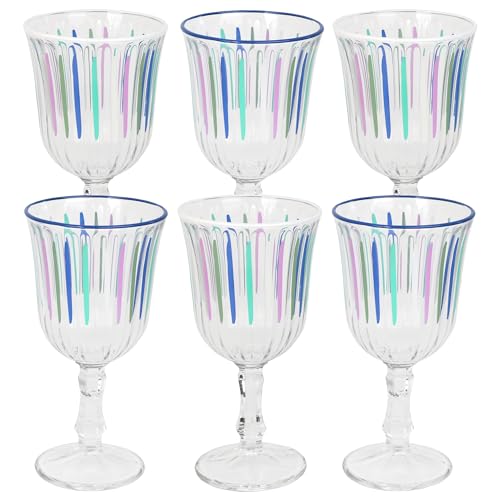 Talking Tables 6 x Wine Glass White and Blue Coloured Striped Drinking Glasses for Wine Prosecco Water Juice Cocktail Summer Birthday Party Christmas Restaurants Catering BBQ 240 ML