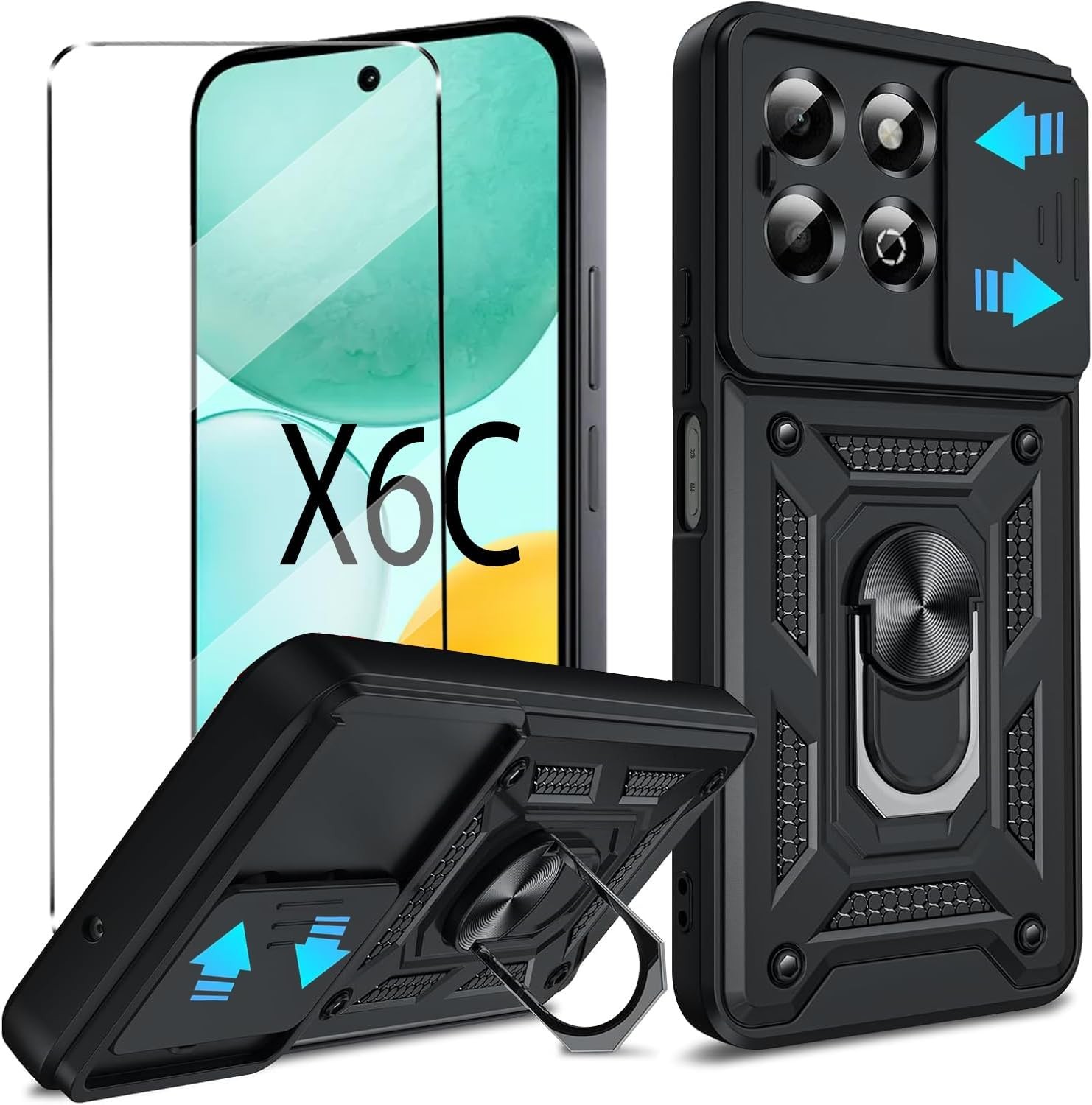 2-in-1 Case for HONOR X6C Phone Case Screen Protector with Slide Camera Protect