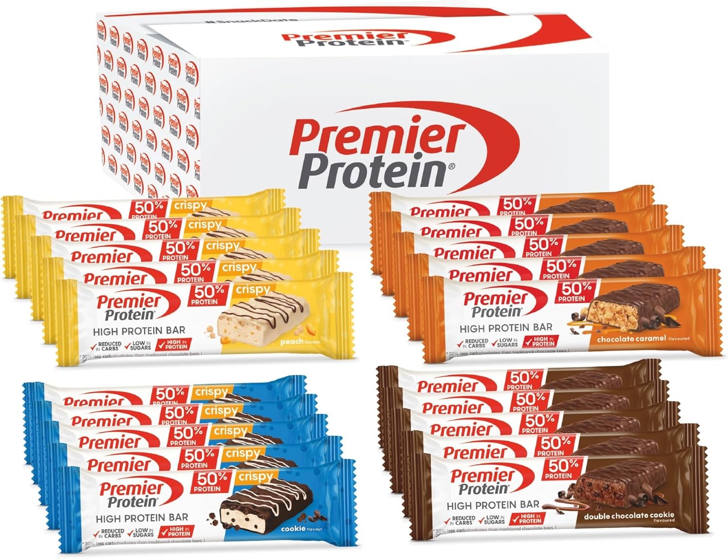 Premier Protein - High Protein Bar 50% - Multiflavourbox - 20x40g - Low Sugar -