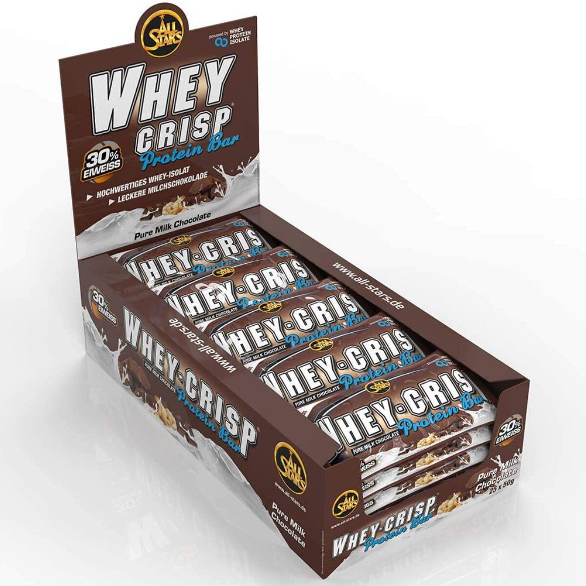 Allstars Whey Crisp Pure Milk Chocolate Protein Bar 50g 25 Pack