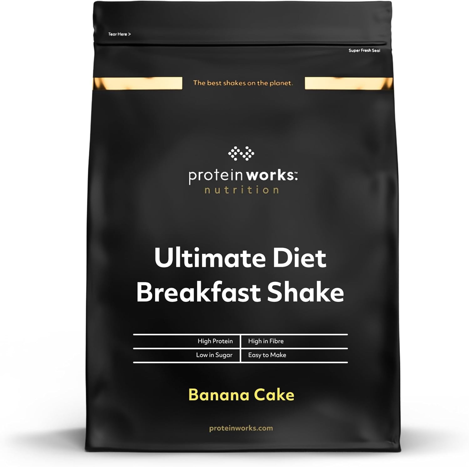 Protein Works | Diet Breakfast 360 - GOLD Innovation, On-the-Go Healthy Weight Loss Meal Replacement Shake, Added Caffeine, Low Sugar, Banana Cake, 9 Servings, 500g