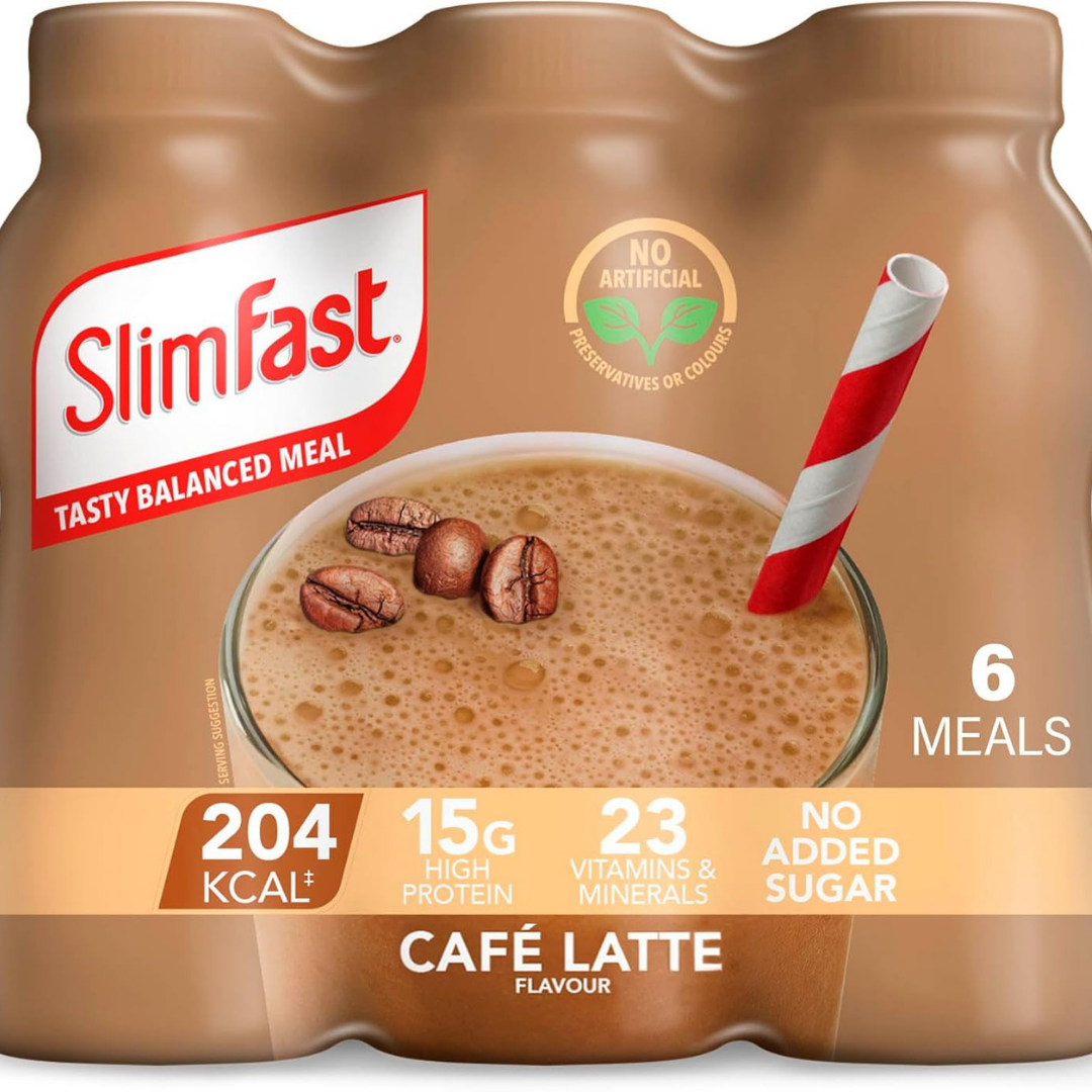 SlimFast Ready To Drink Shake, Meal Replacement Shakes for Weight Loss & High Protein, Vitamins, Minerals, No Added Sugar Cafe Latte Flavour 6x325 ml