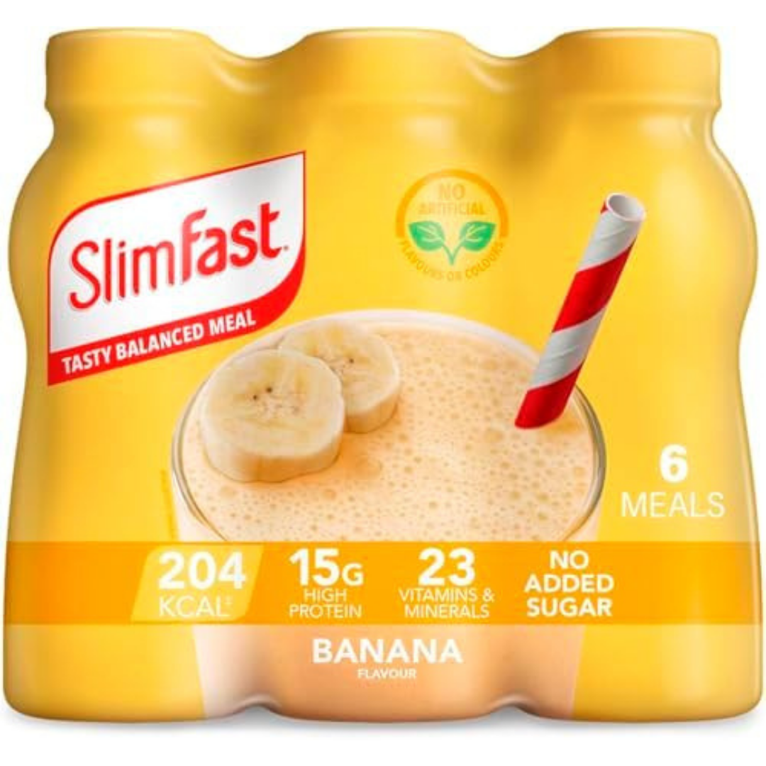 SlimFast Ready To Drink Shake Meal Shakes for Weight Loss Diet Protein Vitamins Minerals NoSugar BananaFlavour Multipack 6 x 325 ml Packaging May Vary