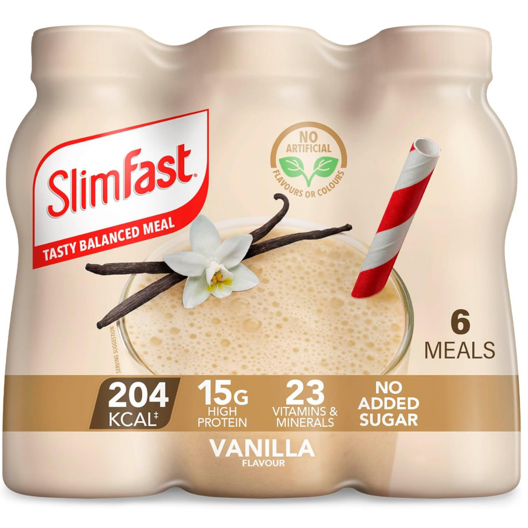 SlimFast Ready To Drink Shake Meal Shakes for Weight Loss & Balanced Diet High Protein Vitamins & Minerals No Added Sugar, Vanilla Flavour 6 x 325 ml