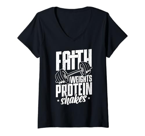 Women's Faith Weights Protein Shakes Christian Gym V-Neck T-Shirt