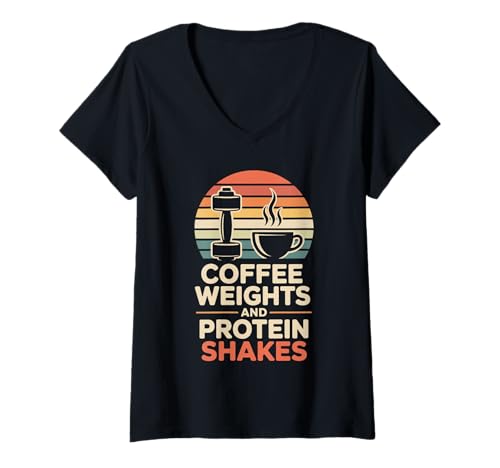 Women's Coffee Weights and Protein Shakes Funny Gym V-Neck T-Shirt