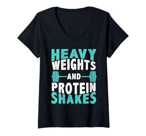 Women's Heavy Weights and Protein Shakes Funny Gym Motivation Lift V-Neck T-Shirt