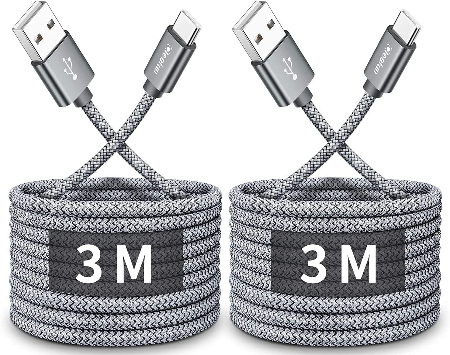 CLEEFUN 3M USB C Cable (2-Pack), Long PS5 Controller Charger Fast Charging USB-