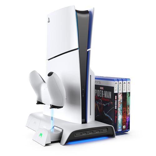 PS5/PS 5 Slim/PS5 Pro Cooling Stand with Auto Turbofan & 3-Level Speeds, P5 5 Cooling Station with Controller Charger, Charing Station for All Playstation 5 Console, PS Five/ Slim/ Pro Pro Accessories