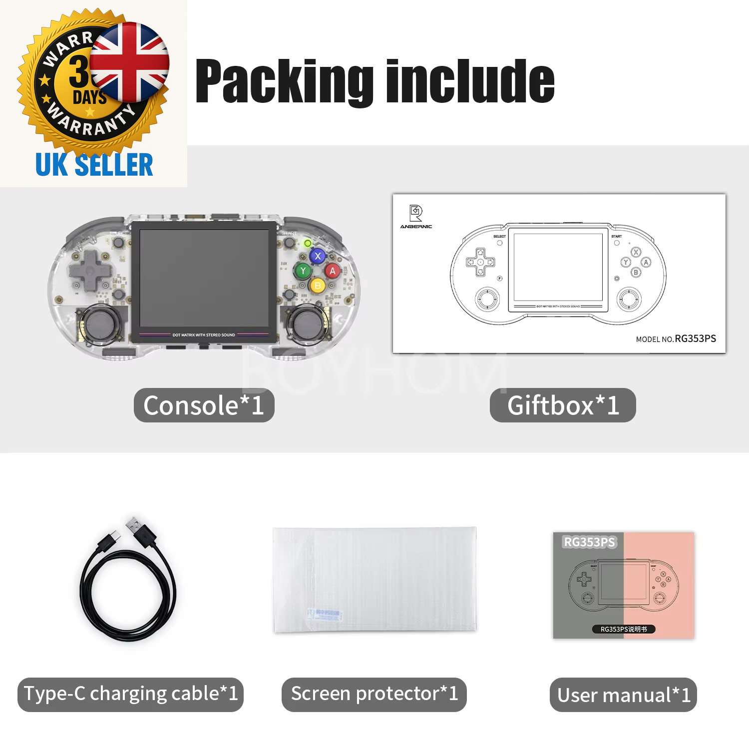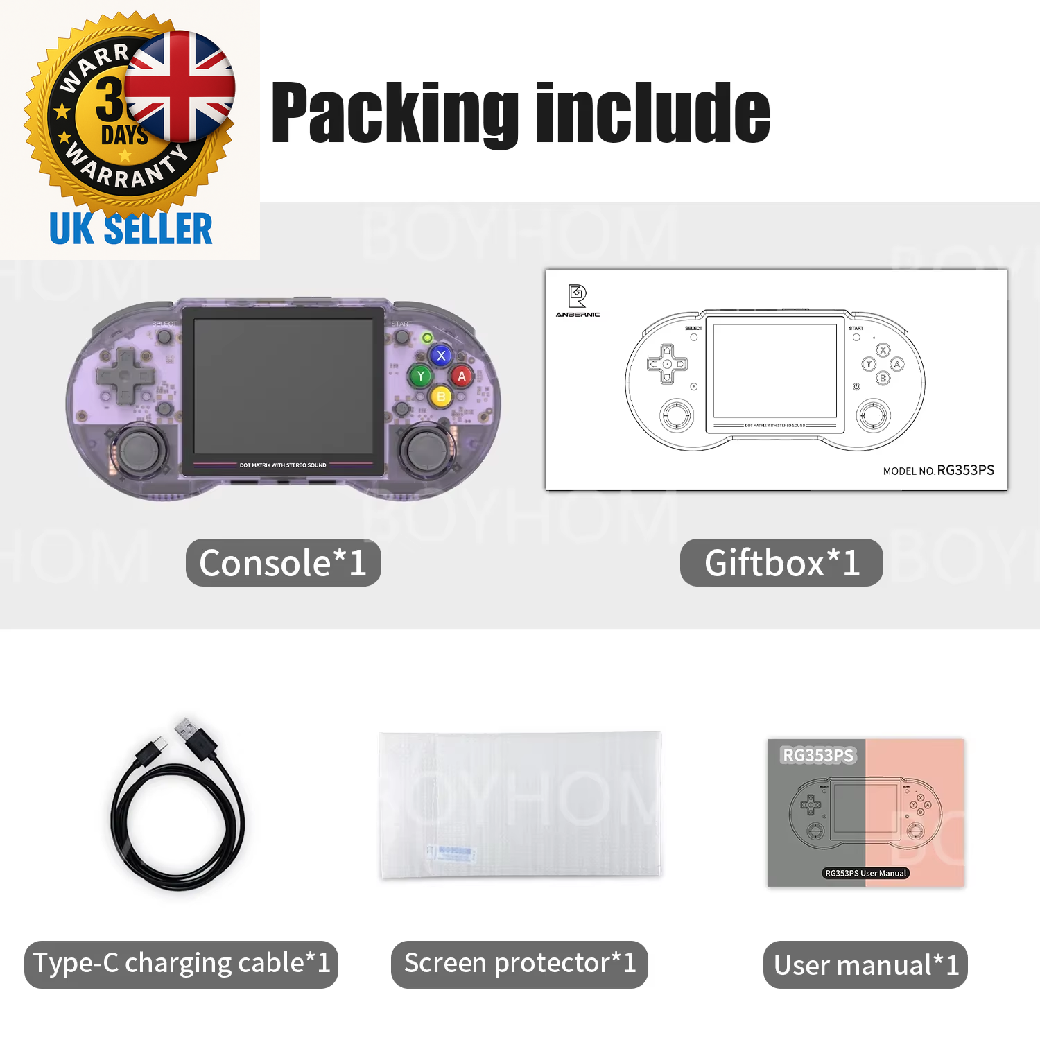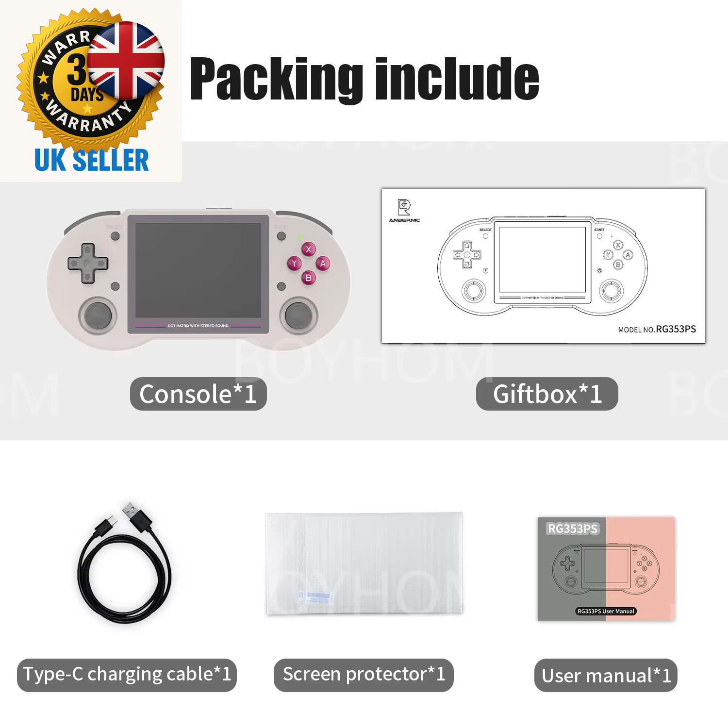 RG353PS Plug & Play Video Games 128G Tf Card Built-in 4500 Games,RG353PS Handheld Game with 3.5-inch IPS Screen Supports HDMI
