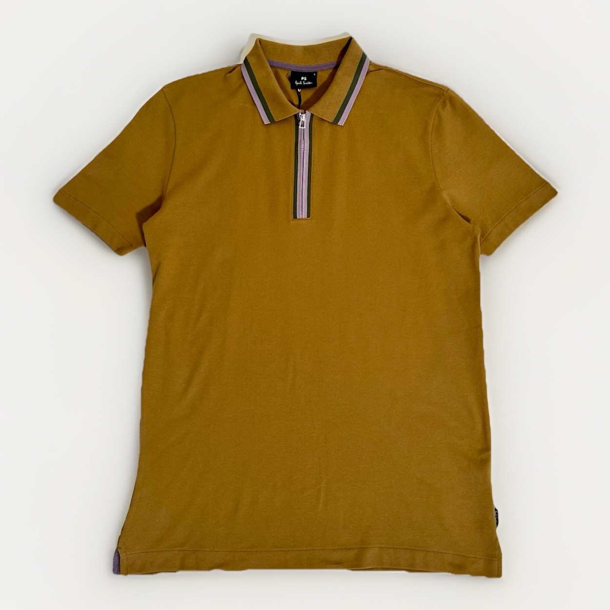 PS Paul Smith Men’s Polo Shirt Zip Up Brown Size Small Tipped Collar Top Cotton
