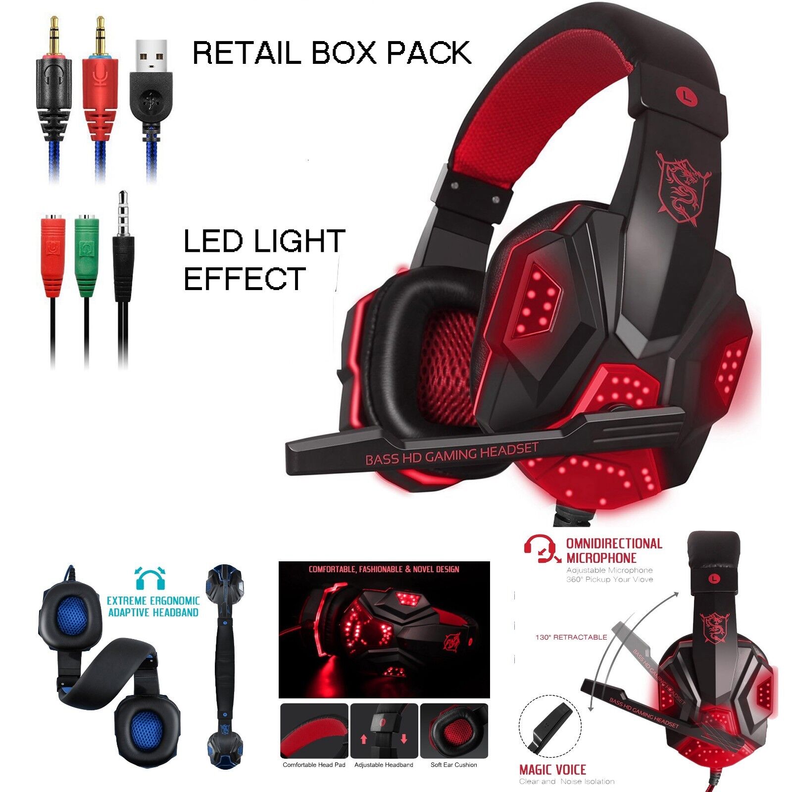 HEADSET HEADPHONE WITH MICROPHONE FOR XBOX ONE & S PS4 PRO LAPTOP Led Light