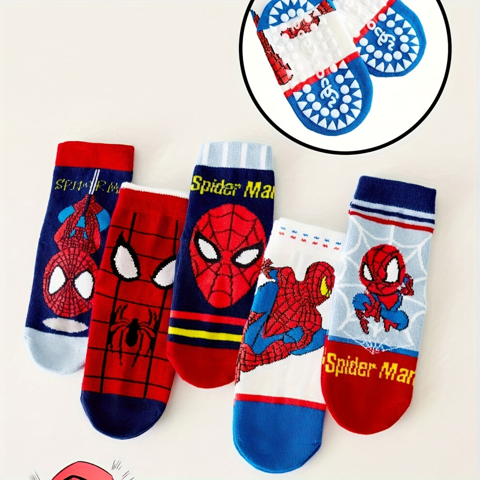 (Multicolor [5 Pairs], 1-4Y) 5 Pairs of Children's Socks Winter Edition Cute Spider-Man Series Girls' Mid-Calf Socks Superhero Korean Style Cartoon Bo