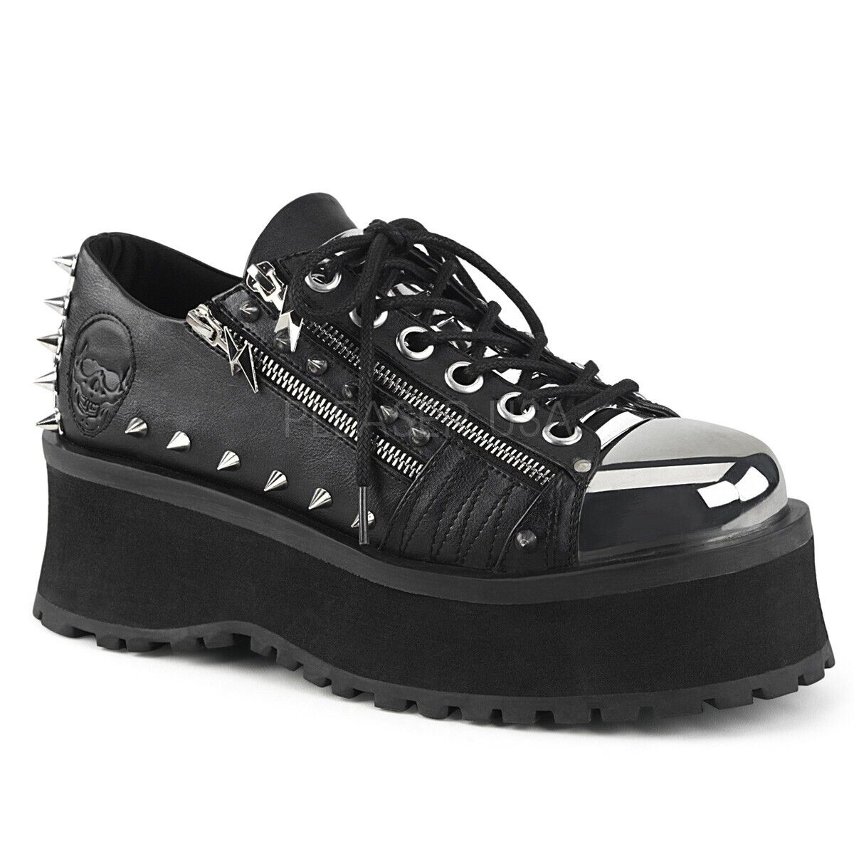 DemoniaCult Gravedigger-04 Platform Lace-Up Shoe W/ Metal Toe Cap UK4 IN-STOCK