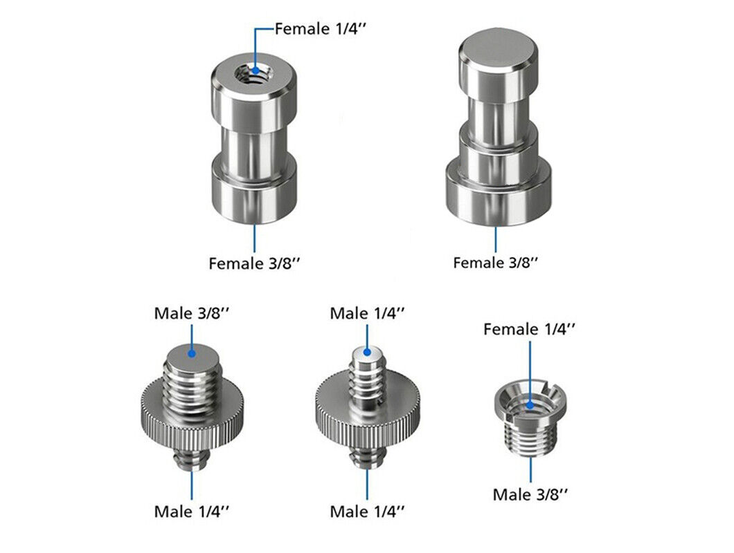 5 in 1 Adapter Kit For Tripod, Lamp Stand, Tripod Spigot 3/8" 1/4" - UK STOCK