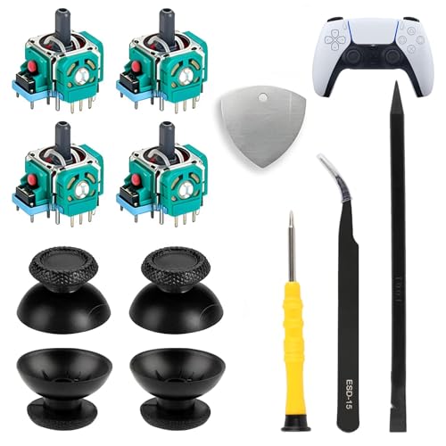 zstg Replacement Kit for PS5 and PS4 Analog Sticks, 3D Joystick with Thumbstick Caps, Screwdrivers, Pry Tool, Complete Repair Tools Compatible with Playstation 5 and PS4 Controller