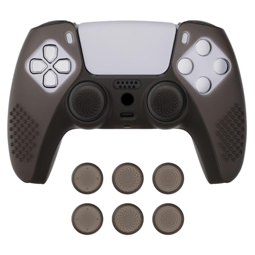 eXtremeRate PlayVital Gray 3D Studded Edition Anti-slip Silicone Cover Skin for ps5 Controller, Soft Rubber Case Protector for ps5 Wireless Controller with 6 Black Thumb Grip Caps