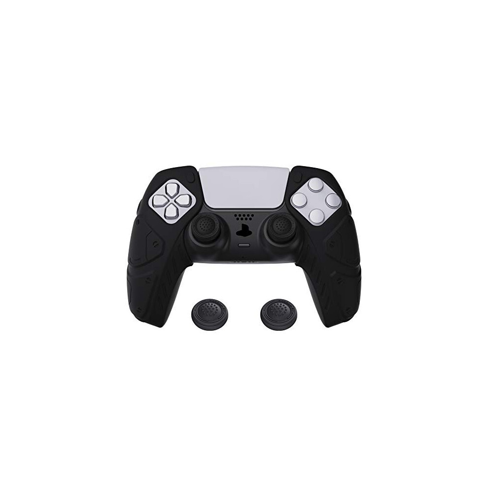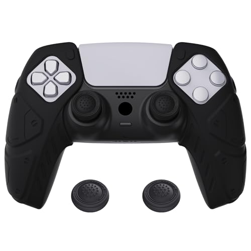eXtremeRate PlayVital Guardian Edition Black Ergonomic Soft Anti-slip Controller Silicone Case Cover for ps5, Rubber Protector Skins with Black Joystick Caps for ps5 Controller