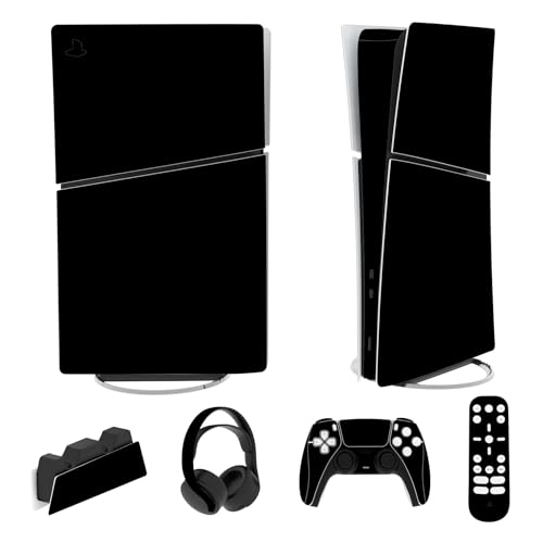 PlayVital Full Set Skin Sticker for ps5 Slim Console Digital Edition (The New Smaller Design), Vinyl Skin Decal Cover for ps5 Controller & Headset & Charging Station & Media Remote - Black