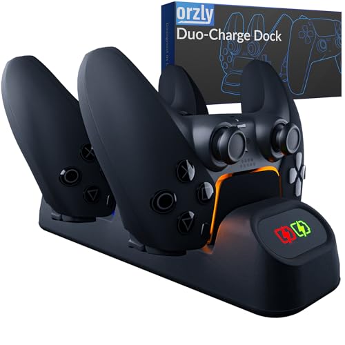 Orzly PS5 Controller Charging Station made for PlayStation 5 Console PS5 Controllers - Twin Docking charging Station PS5 Accessories Solution - Jet Black Edition