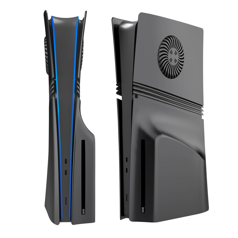 Mcbazel PS5 Slim Faceplate Replacement Hard Side Panel Plate,Protective Replacement Cover with Cooling Vent Accessories for Playstation 5 Slim Disc Edition - Black