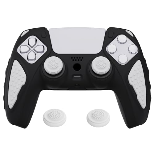 playvital Knight Edition Black & White Two Tone Anti-Slip Silicone Cover Skin for ps5 Controller, Soft Rubber Case for ps5 Wireless Controller with Thumb Grip Caps