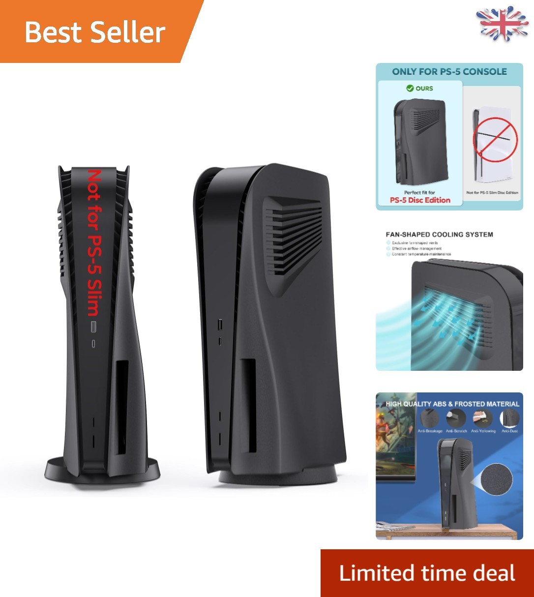 Dust Cover for PS5 Console, Universal Protective Dust Cover for PS5 Digital & Regular Edition, Durable Material, Black
