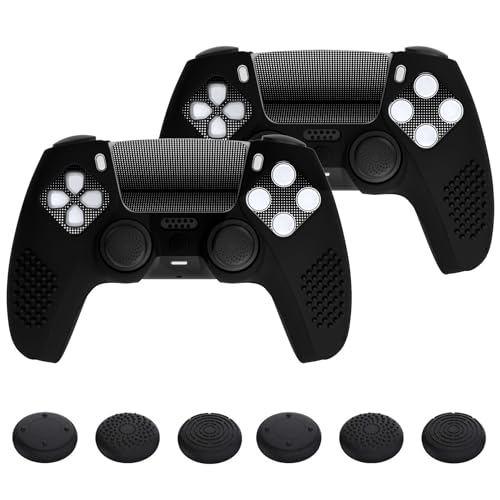 PlayVital 2 Set Upgraded Silicone Cover Skin for ps5 Controller with 12 Thumb Grips & 4 Stickers, Compatible with Charging Dock, 3D Studded Edition Anti-Slip Shockproof Controller Grip, Black