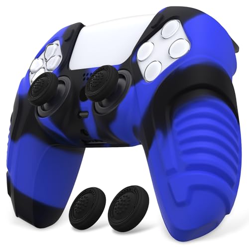 playvital Ninja Edition Anti-Slip Silicone Cover Skin for ps5 Wireless Controller, Ergonomic Protector Soft Rubber Case for ps5 Fits with Charging Station with Thumb Grip Caps - Blue & Black