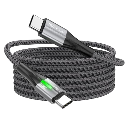 TECHGEAR USB C to USB C Charger Cable, 240W PD3.1 [3M] Long Type C Super Fast Charging LED Light Indicator Lead for MacBook Pro, HP Dell Asus Acer Laptop, iPad Pro/Air, S25 S24, iPhone 17 16, PS5 etc
