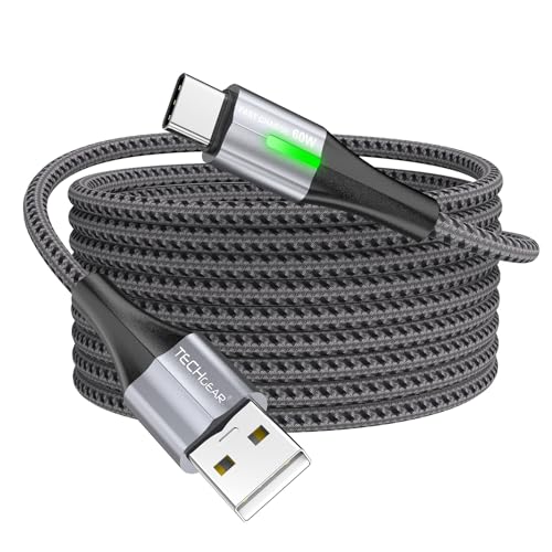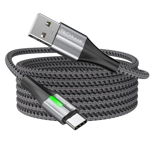 TECHGEAR 60W USB C Charger Cable, 3M LED Light Indicator Type C Fast Charging Braided USB A to USB-C Phone Charger Cable for iPad Air/Pro, iPhone 17/16/15 Pro Max, S25 S24 Ultra, Pixel, PS5 Switch etc