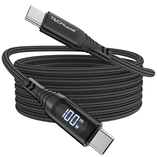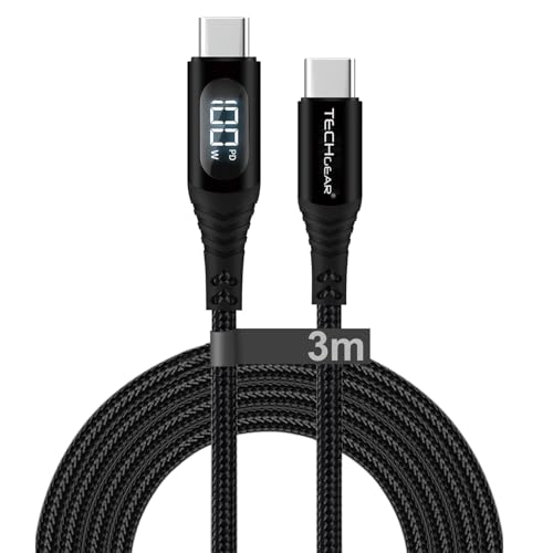 TECHGEAR 100W USB C to USB C Charger Cable Fast Charging 5A Type C Cable LED Display Compatible with MacBook Pro/Air, iPad Pro 2024/Air, iPhone 17 Pro Max, Galaxy S25 S24, Pixel 10 9, PS5 Switch (3m)