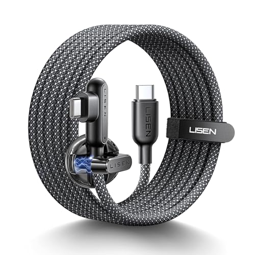 LISEN USB C to USB C Charger Cable 100W, Type C Charger Cable Fast Charging [2M, Cord Holder] Right Angle USBC to USBC for iPhone 17 16 15 Pro Max, MacBook Pro/Air, HP, iPad Air 5, Galaxy S25, PS5
