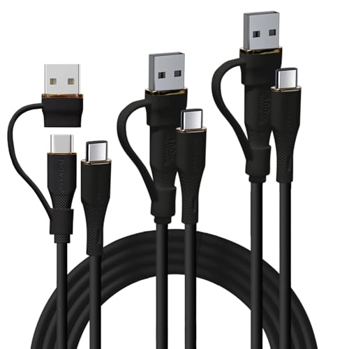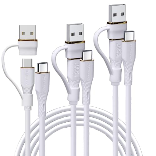 TECHGEAR 2in1 100W USB A/C to USB C [3 Pack] Soft Silicone Charger Cable Fast Charging Tangle Free Compatible with MacBook Pro/Air, iPad A16 Air/Pro 2024, iPhone 17, S25 A17, PS5, Switch (0.3M/1M/2M)