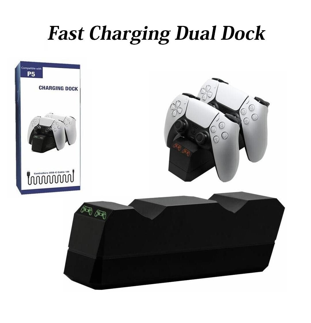 PS5 Controller Charging Dock, Dual Controller Charger Station with Type-C Cable,
