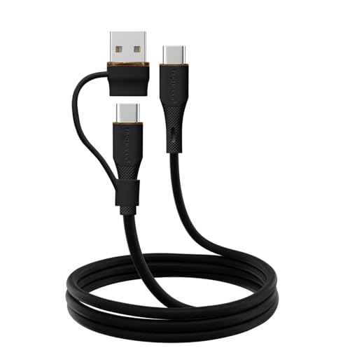 TECHGEAR 2in1 100W USB A/C to USB C Soft Silicone Charger Cable Fast Charging 5A Tangle Free Cable Compatible with MacBook Pro/Air, iPad Air/Pro 2024, iPhone 17 16, Galaxy S25 S24, PS5, Switch (1M)